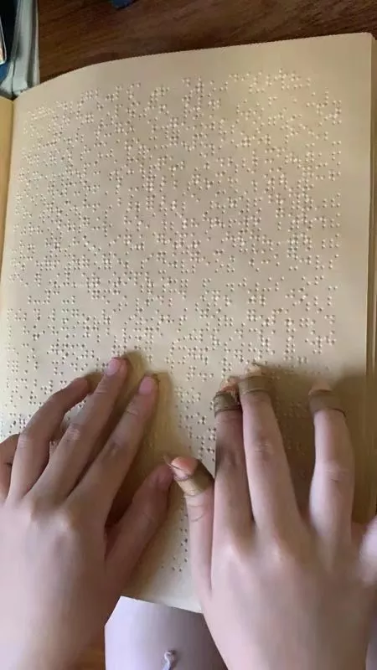 盲人学习琵琶有很多困难,比如艰涩难懂的乐理知识,别人一眼看过,小雅祺却需要用双手一起,一个字一个字地“触摸”过去。