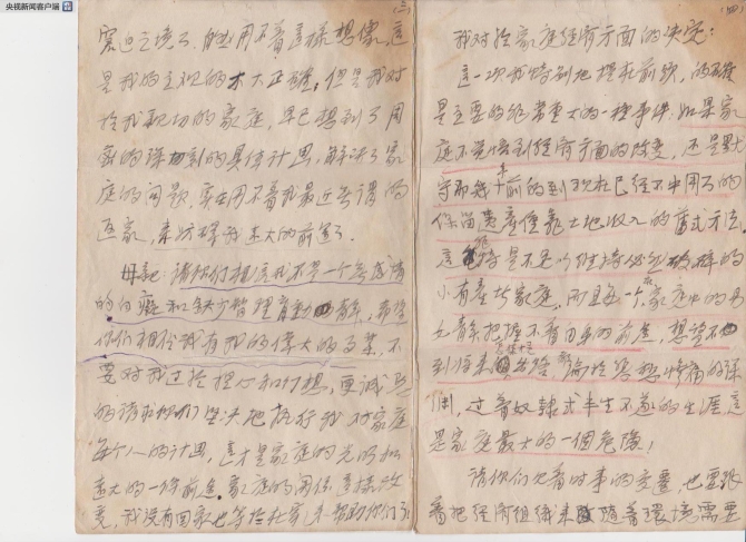 “母亲,请你们相信,我不是一个无感情的白痴和缺少理智盲动青年。希望你们相信,我有我的伟大的事业,不要对我过于担心和幻想。更诚恳地请求你们,坚决地执行我对家庭每个人的计划,这才是家庭的光明和远大的前途。”