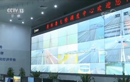 在港珠澳大桥管理局调度中心的大屏上,港珠澳大桥全长22.9公里的桥面,6.7公里的沉管隧道,以及东西人工岛的运行情况一览无余。