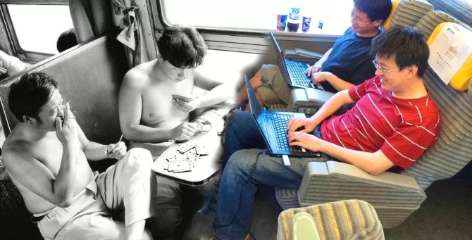 那时候,车很慢,一次旅程,可以结识几个好友,甚至发展出更多的后续……现在:听歌、追剧、看小说、打游戏,一个人足够了。