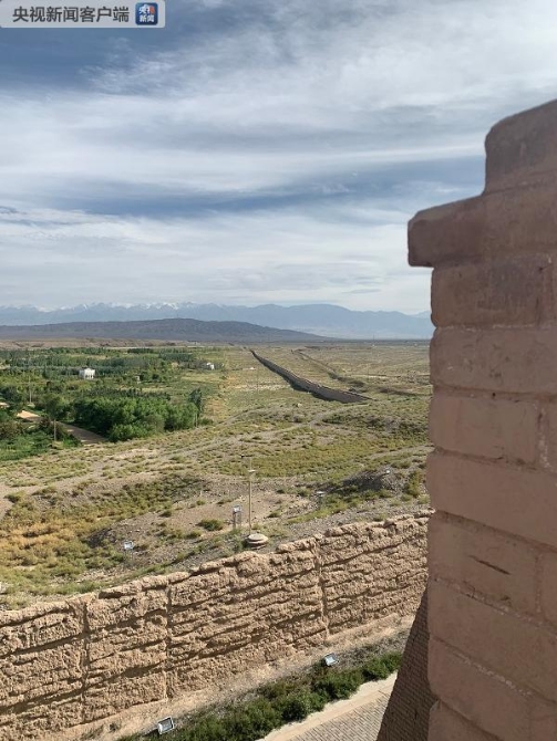 △在关城上远眺祁连山和酒钢。(央视记者沈忱拍摄)