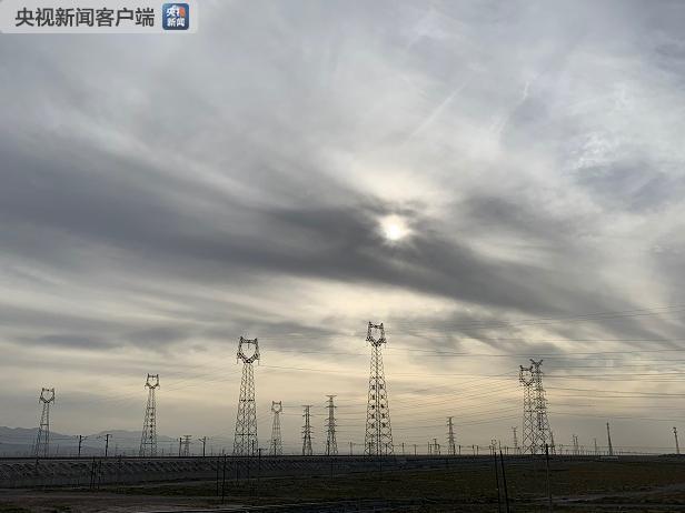 △关城外一座座高压电塔像在戈壁滩上驻守的士兵。(央视记者段德文拍摄)