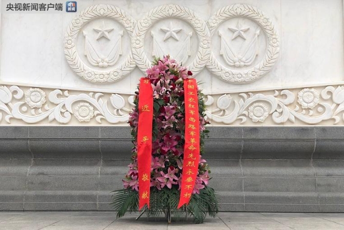 △习近平向中国工农红军西路军革命先烈敬献花篮。点击查看视频>>>>>