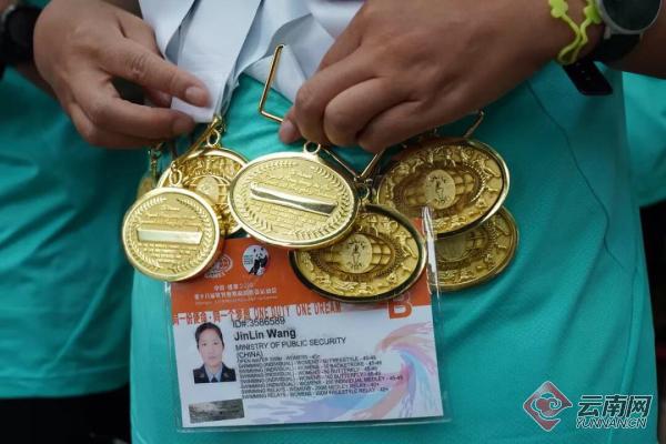 中国全体参赛警察和消防员取得的金牌数和奖牌数均位列本届比赛首位,云南公安系统一路披荆斩棘,共夺得了37枚奖牌,其中金牌26枚、银牌6枚、铜牌5枚,居中国各省、自治区、直辖市代表队第一位。其中,昆明公安派出的10名队员,分别代表中国国家队、云南代表队参加了游泳、拳击、警察两项、巴西柔术、铁人三项、网球6个项目的比赛, 斩获23枚金牌、3枚银牌和1枚铜牌。 值得一提的是,两个金牌大户昆明戒毒所民警王锦林和昆明交警支队民警白琳分别斩获各自年龄组游泳项目的8枚和7枚金牌。