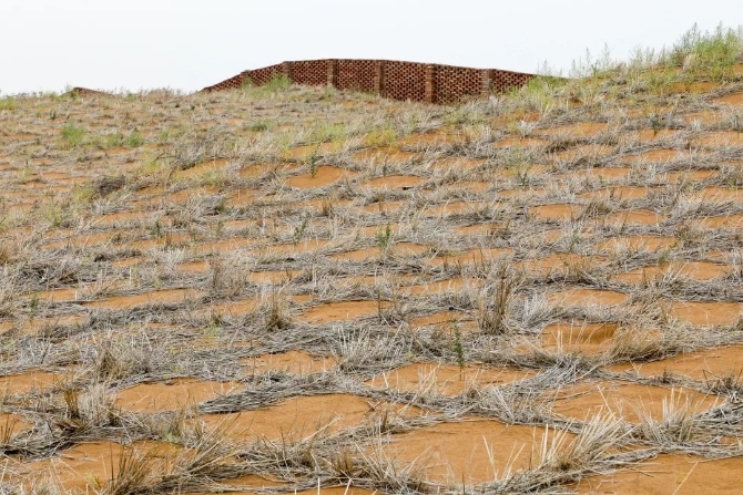 惊奇的是第二天这几个字没有被夜间流动的沙涛所淹没依然挺立在沙丘之上由此给治沙带来了新的灵感