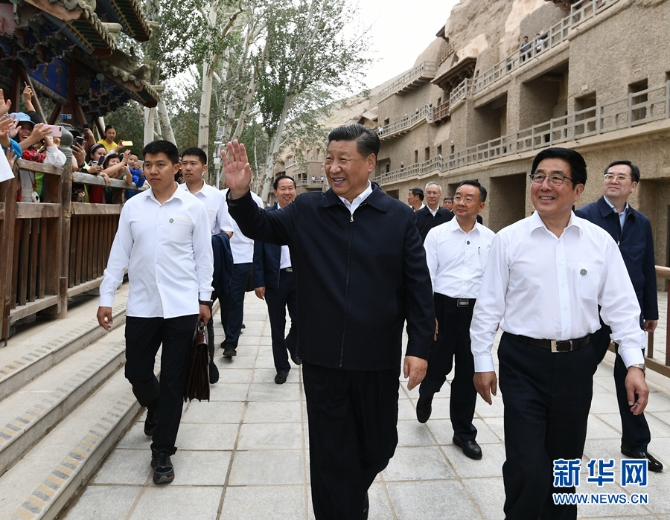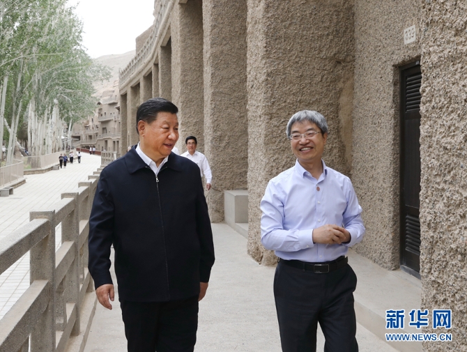 19日上午,习近平从北京乘机抵达酒泉市所辖敦煌市,即前往莫高窟考察了解莫高窟历史沿革和文物保护研究情况,并走进洞窟察看历史悠久的彩塑、壁画。