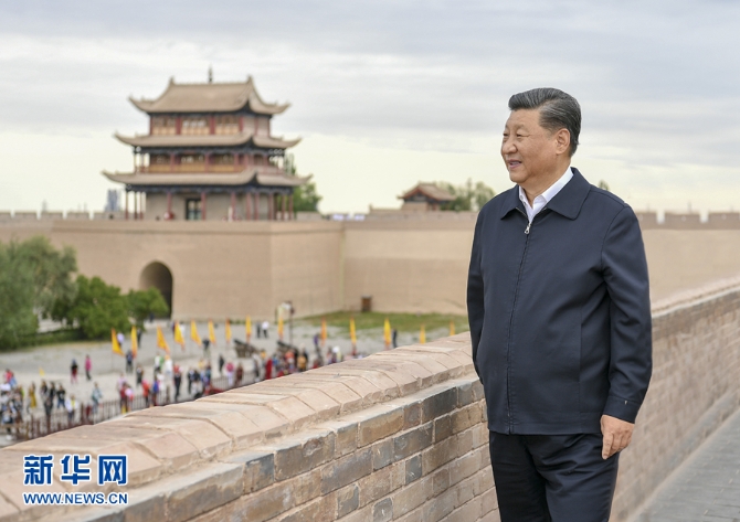 20日上午,习近平总书记来到嘉峪关关城,登上城楼察看关城整体面貌,听取河西走廊长城、关隘历史文化情况介绍。