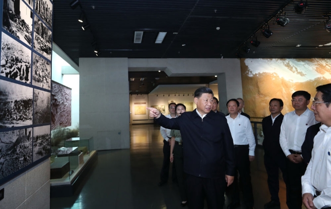 习近平在张掖市高台县参观中国工农红军西路军纪念馆。