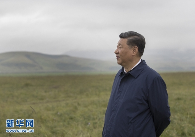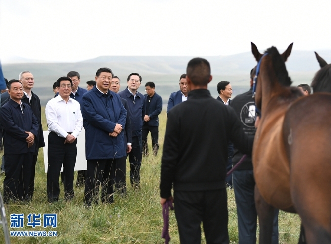 习近平在中农发山丹马场有限责任公司一场考察,实地了解祁连山生态环境恢复和保护情况。