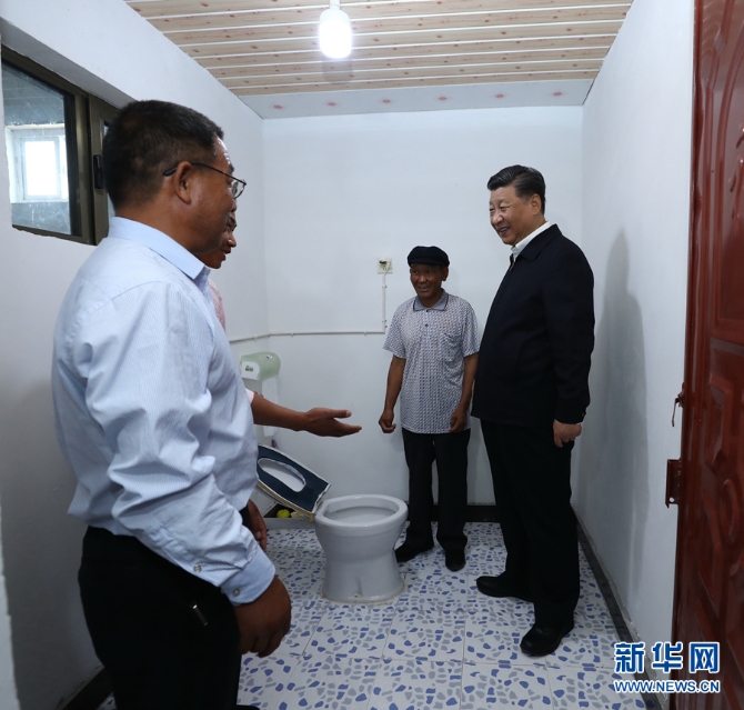 21日上午,习近平前往武威市古浪县黄花滩生态移民区富民新村考察调研。