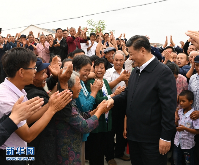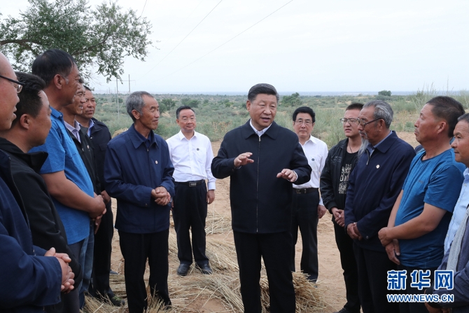 习近平在武威市古浪县黄花滩生态移民区富民新村同村民亲切交谈。