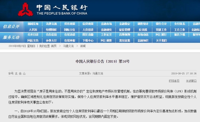今天下午,中国人民银行发布公告宣布:从10月8日起,新发放的个人住房贷款,定价基准从贷款基准利率转换为LPR,也就是贷款基础利率。