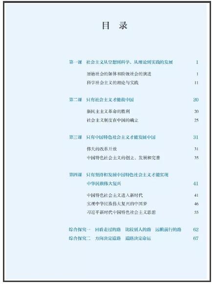 普通高中思想政治教材总主编、南京大学教授张异宾介绍,必修4册教材采取总分方式,《中国特色社会主义》是总览和基础,让学生对中国特色社会主义的形成和发展有总体了解;《经济与社会》《政治与法治》《哲学与文化》分领域进行深入阐释,让学生具体理解如何坚持和发展中国特色社会主义。选择性必修3册教材则重在培养学生用全球视野认识人类社会发展大势,用法律手段处理日常问题,用科学思维探索认识世界。