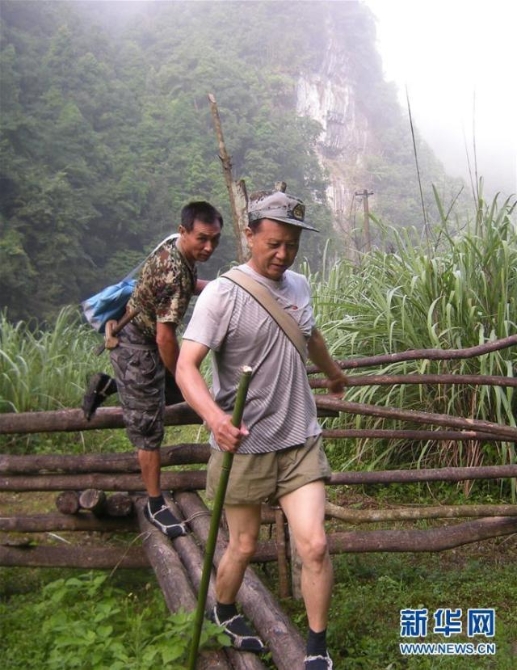 王新法(前)在湖南石门县薛家村考察(2014年摄)。新华社发