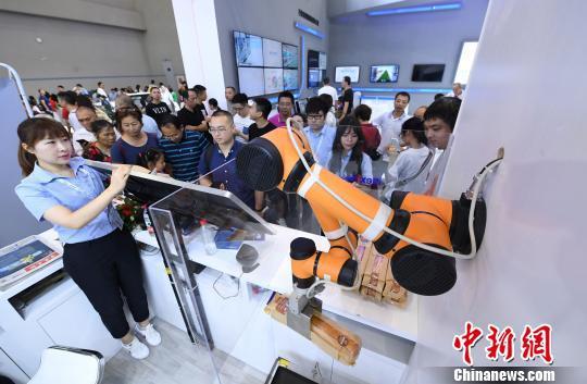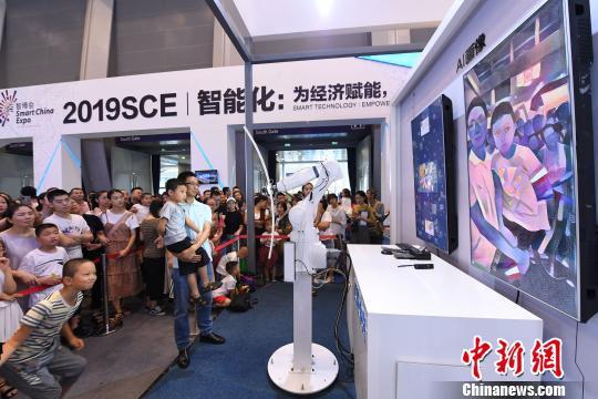 8月29日,重庆举办的2019中国国际智能产业博览会(简称智博会)展览现场,智能机器人为观众展示出不同的才艺。