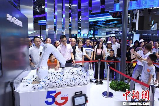 图为民众体验5G远程控制——隔空抓物。陈超 摄