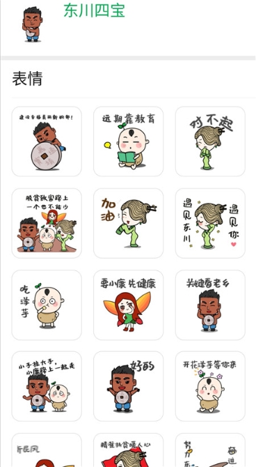 关注“东川四宝”的用户,可以通过点击微信首页最底部“我”→表情→表情商店→输入“东川四宝”搜索,添加到表情后,即可在微信社交交流、沟通中使用。在这系列表情包中,既有通俗易懂、接地气的动画表情,也有拼搏奋斗、弘扬正能量时代表情。例如,面条西施边眨巴着眼,以“遇见东川,遇见你”、古铜汉子以“确认过眼神,你就是东川人”、洋芋娃以“开花洋芋等你来”等简单、直观、通用的社交词语为东川代言,为用户表情!添加下载这系列表情包是免费的。