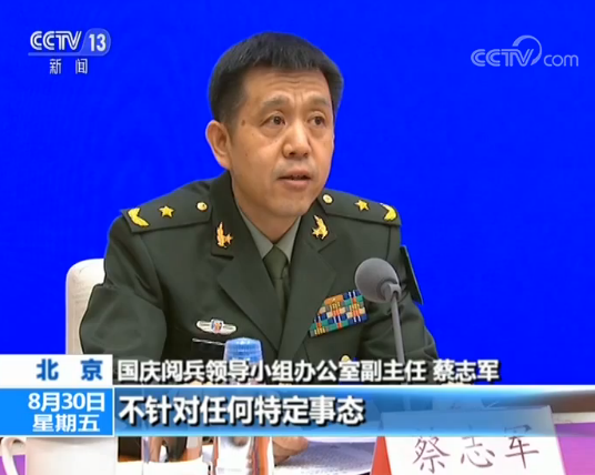 蔡志军说今年的阅兵式也是新时代的首次国庆阅兵,总体上比庆祝新中国成立50周年、60周年阅兵和纪念抗战胜利70周年阅兵的规模要大一些。此外,蔡志军还强调,此次阅兵不针对任何国家和地区。