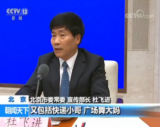 北京市委常委、宣传部长 杜飞进:群众游行和联欢活动,是70周年国庆庆祝活动非常重要的组成部分,游行群众涵盖各行各业、各族各界,既包括工人、农民、教师、学生、医生、公务员等各领域的群众代表,又包括快递小哥、广场舞大妈、新的社会阶层人士等新兴领域的群众代表,还包括港澳台同胞、海外侨胞和外国友好人士等等。