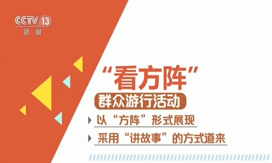 首先,国庆日当天上午的群众游行“看方阵”。据了解,“群众游行活动”将以“方阵”形式展现,而且将采用“讲故事”的方式娓娓道来。以时间为轴线,每个方阵展现一个场景、讲述一段故事,小方阵连成大画卷,小场景反映大时代,从每一个方阵的小故事中传递大道理。国庆日当天,数个群众方阵将在长安街上徐徐展开一幅流动的新画卷。