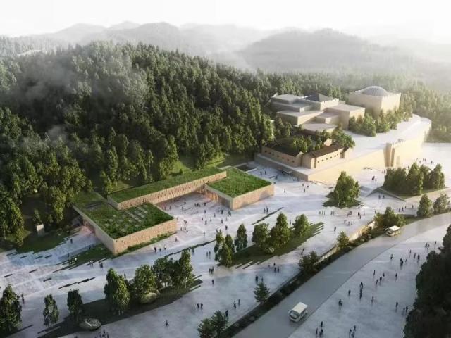 这便是大名鼎鼎的京张高铁八达岭站入口,而车站则深藏于地下百米,有“神龙见首不见尾”的神韵。