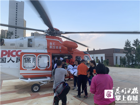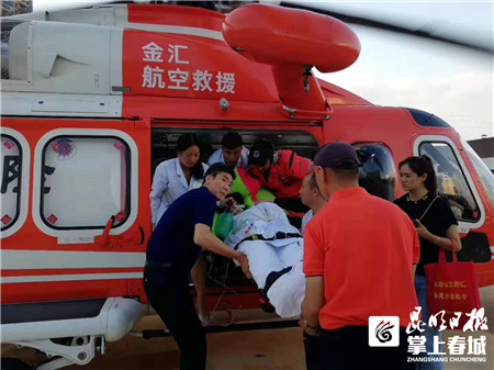 金汇通航相关负责人介绍,这是今年金汇救援直升机在云南第15次执行航空救援任务。相较地面救援近6小时的车程,金汇救援直升机AW139从接驳病人起飞到降落在昆明医科大学第一附属医院呈贡医院,仅用时58分钟就高效完成了转运任务,为患者空中转院开启了绿色生命通道。