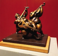 雕像的作者尚荣、傅礼城与琳娜(Lene Desmentik)在《辛德贝格》像前合影