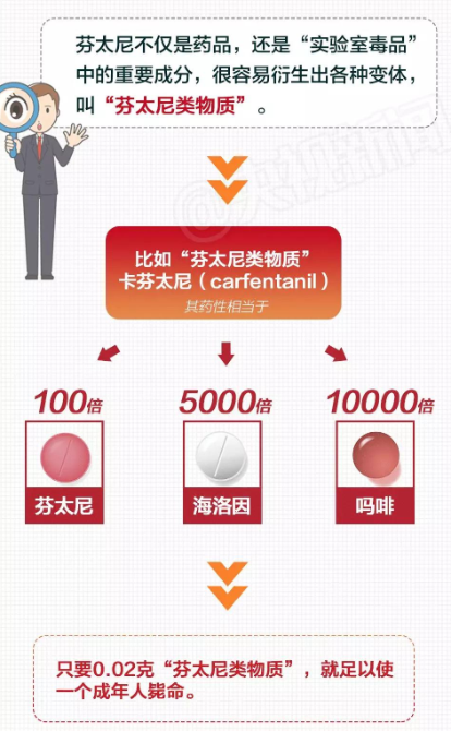 5月1日开始,《关于将芬太尼类物质列入<非药用类麻醉药品和精神药品管制品种增补目录>的公告》正式生效,这意味着,所有芬太尼类物质在中国均被视为毒品,受到严格管制。