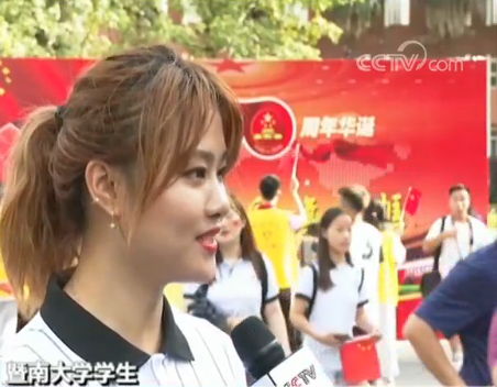 暨南大学学生 龚心蕊:升旗仪式的时候,我看到我们的国旗护卫队迈着整齐的步伐,也看到了鲜艳的国旗冉冉升起,那个时候我内心很是自豪和骄傲。