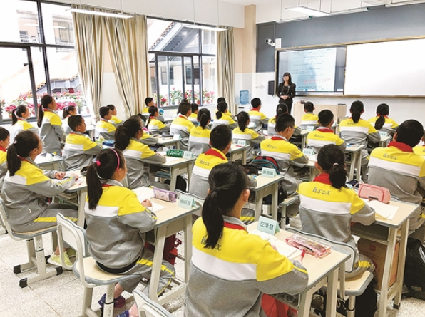 该校在课程设置上也进行了创新,每班每天都开设一节体育课。张琼介绍,学校体育课还采取了“3+2”模式,每周3节是国家规定的体育课程,另外2节是特色体育课程。“特色体育课程会开展班级之间的体育竞技,也有由体育老师自创的特色体育。此外,每天还有半个小时大课间,除了4套课间操还要求学生慢跑,确保学生的锻炼时间。”