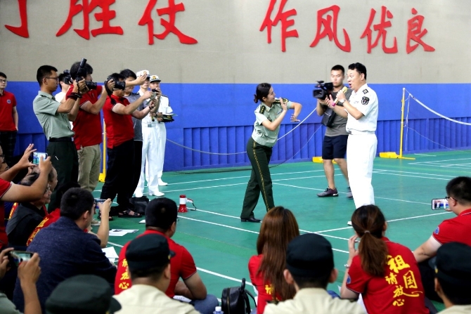 4日,由中央网信办、中央军委政治工作部共同举办的“祖国,请放心”网络名人进军营暨网络媒体国防行活动走进海军大连舰艇学院。
