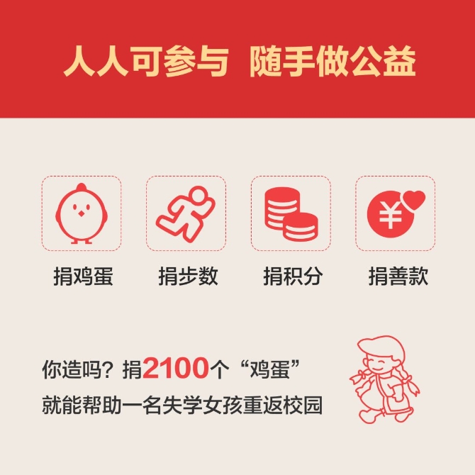 据介绍,捐2100个“鸡蛋”,就能帮一名失学儿童返学!