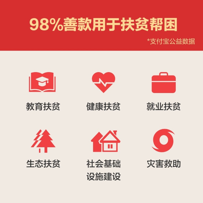 98%的善款用于扶贫帮困。