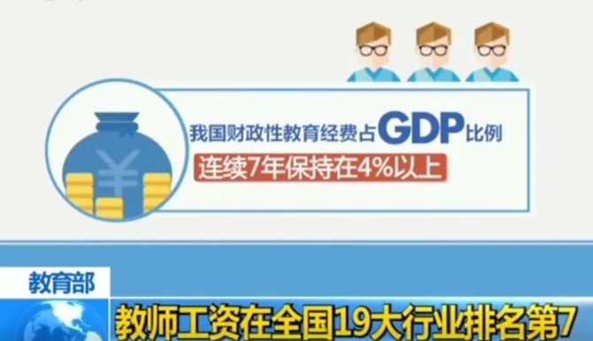 据介绍,教师工资由80年代之前位列国民经济各行业倒数后三位,提升到目前全国19大行业第7位。