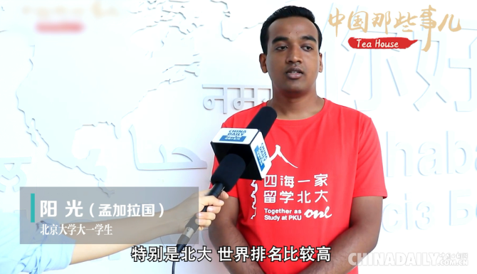视频里的学生名叫阳光,来自孟加拉国,今年9月将正式成为北大新生。其实阳光曾因为语言的障碍和内心的恐惧,差点放弃来中国学习的机会。但在收到北大通知书的那一刻,他决定战胜自己,来中国“筑梦”。