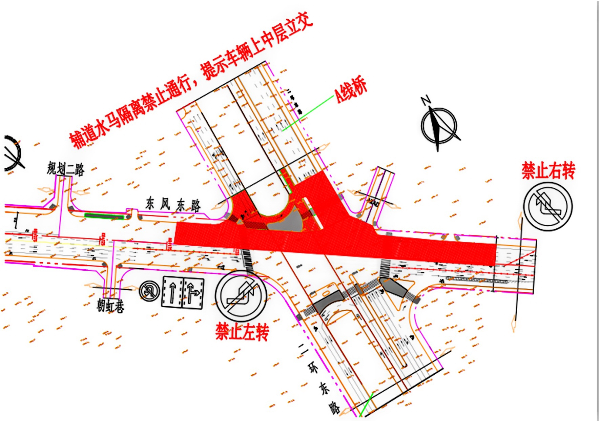 该路段半幅封闭施工期间,路过车辆可提前选择由环城东路、金马路、二环东路中层立交、上层立交、菊花立交、人民东路进行绕行。
