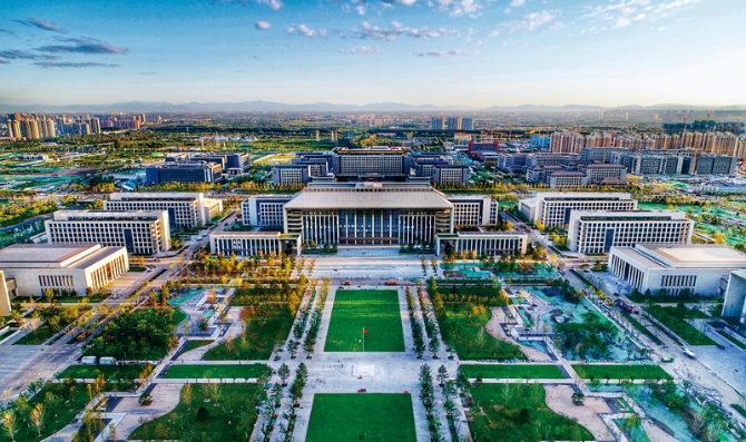 规划建设北京城市副中心,是习近平总书记亲自提出并推动的重大战略决策,是千年大计、国家大事。北京城市副中心将建设成为新时代的精品城市,为谱写中华民族伟大复兴中国梦的北京篇章作出示范。图为北京城市副中心行政办公区鸟瞰图。 北京日报社供图