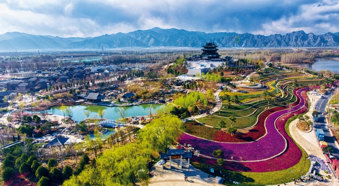 为深入贯彻落实习近平总书记对北京的重要指示精神,北京市按照城市总体规划要求,因地制宜,留白增绿,大尺度建设城市绿色生态空间,让绿色成为这座美丽城市的底色,增强了人民群众的幸福感获得感。图为北京世园会永宁阁。 北京日报社记者 潘之望/摄