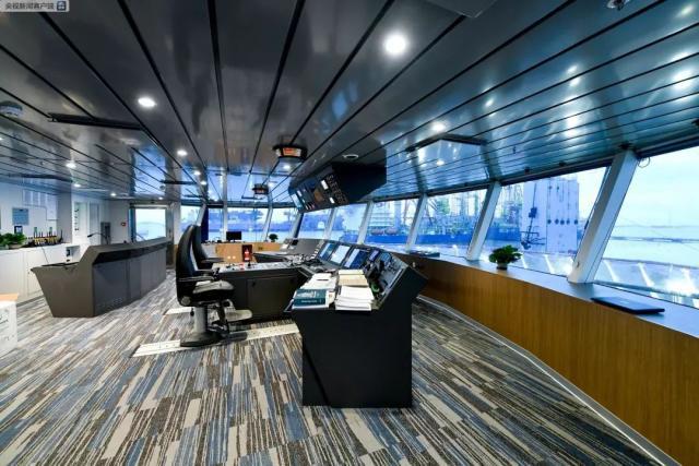 △邮轮主餐厅,可以为船上宾客提供各式餐饮,满足不同国家乘客的各种口味需求。位于邮轮7层的驾驶舱,是整个邮轮的大脑,拥有智能化控制系统,一个人即可实现对整个邮轮的操控。