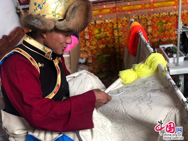 “平措次仁学了8年刺绣,是我们村唯一会刺绣的人,他的手艺非常好,绣的经幡很有市场。”索南央吉告诉记者,平措次仁的家就是他的小作坊,所有的东西都摆在家里,空间很狭小。为了帮助平措次仁创新产品形态、搭建空间平台,索南央吉联系了江白,对其进行一对一帮扶。