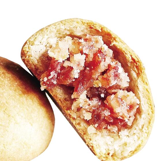 云腿是云南著名特产之一,与浙江金华火腿齐名。制作云腿月饼时,会把材料切成小块,再配以蜂蜜、猪油、白糖等制成馅心,最后烘烤而成。云腿月饼饼皮疏松,咸甜适口,拥有独特的滇式火腿香味,并且不油腻。