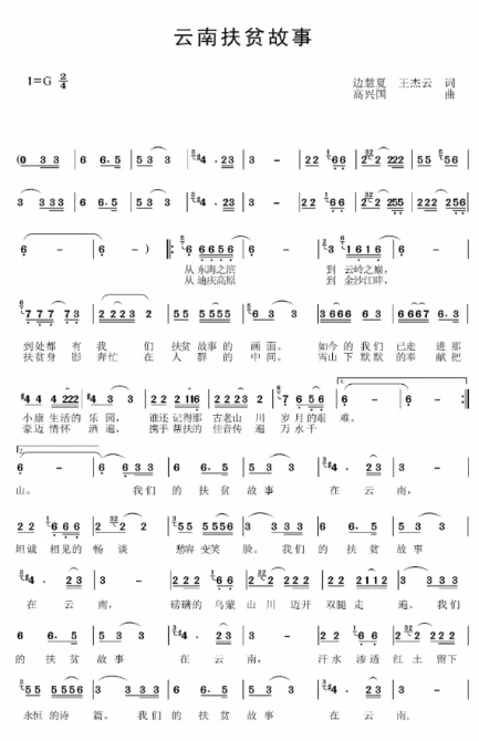 《云南扶贫故事》曲谱 来源:昆明九九文化传播有限公司微信公众号