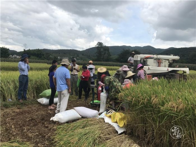 9月10日,由云南省农村科技服务中心主持,邀请国家水稻区域试验首席专家、中国水稻所杨仕华研究员,农业农村部第四届国家农作物品种审定委员会稻专业委员会委员林金平高级农艺师,以及我省农业推广、种子管理等部门的7名专家组成专家组,参照《全国粮食高产创建测产验收方法》,对云南省农业科学院粮食作物研究所李小林研究员主持的云南省重大科技专项(生物种业和农产品精深加工)“云南省水稻新品种创制和产业化示范”项目实施的“云科粳1号”百亩方示范样板进行田间实产验收。