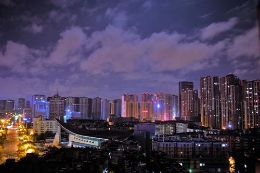 19时30分,昆明万达双塔中秋月景致(二次曝光)