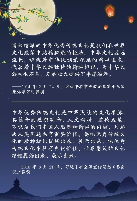 习近平总书记历来高度重视中华传统文化的传承与弘扬。就在几天前,习近平总书记给国家图书馆的8位老专家回信,赞扬他们对“传承文明、服务社会”初心的坚守,勉励大家要“坚持正确政治方向,弘扬优秀传统文化”。