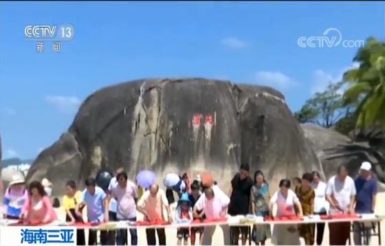 在三亚市,上千名市民游客在天涯海角景区也以快闪的形式齐唱《我和我的祖国》,歌声伴着南国的徐徐海浪,唱响了每个人心中满满的幸福。音乐诉说心声,书画传递情意。在天涯石前,多位书法名家现场挥毫泼墨,用笔墨书写爱国之情。