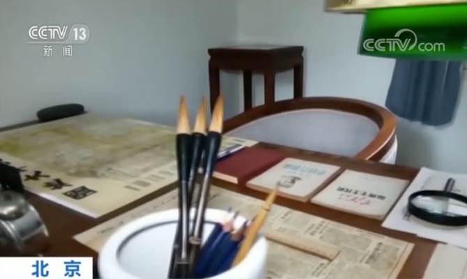 香山公园园长 齐志坚现在,这间房是(周恩来)总理在1949年办公的一个地方。总理在这儿居住的时候,白天去城里工作,晚上来这跟主席汇报沟通一些工作。像这些书稿,包括报纸,包括地图,都是总理当时使用过程中,按照原来进行恢复的。
