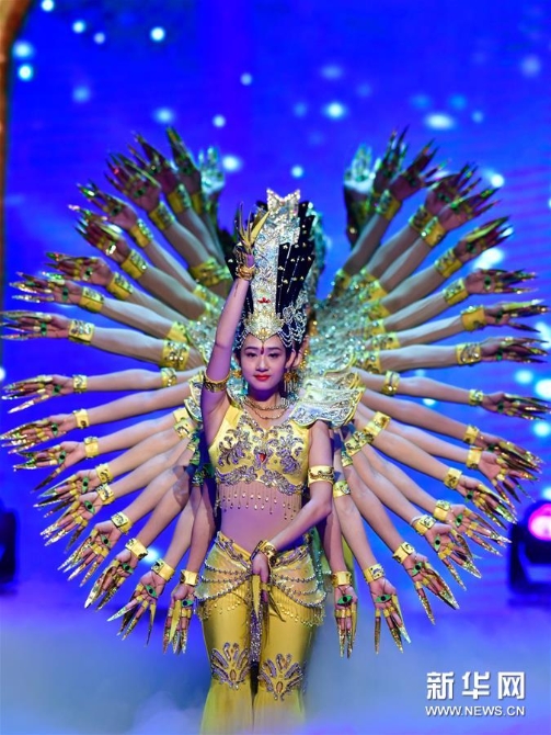 中国残疾人艺术团的舞蹈演员在青海大剧院表演《千手观音》 新华社 记者张龙/摄