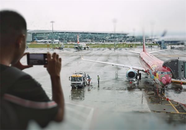 每当飞机执行航班计划前往各地,均吸引“飞友”(飞行爱好者)前往拍摄它的起降;每当飞机停靠在停机坪上,成为旅客纷纷拍照的主角。当旅客走进客舱内,行李架、小桌板上均印有连云港著名的景点和孙悟空形象图案,让西游记元素从飞机外延续到飞机内。