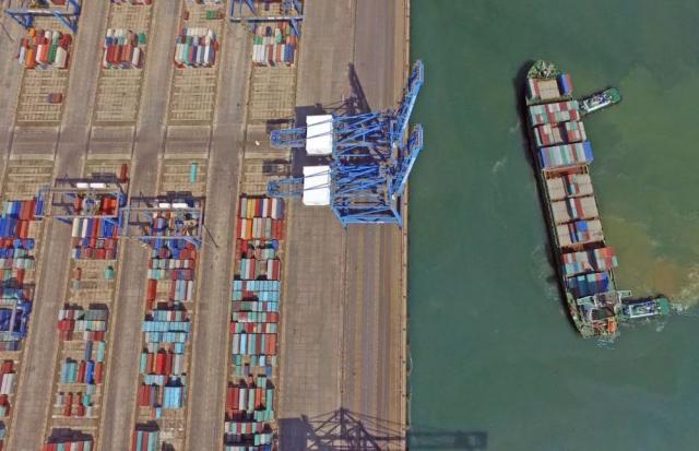 2017年6月13日,大连港集装箱码头,大连港是北粮南运的枢纽之一。(新华社记者杨青 摄)